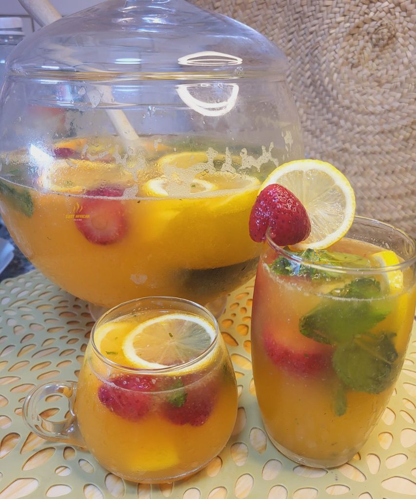 Tropical bubbly punch with exotic fruits and mint – refreshing, vibrant, and full of Mombasa sunshine in every sip!