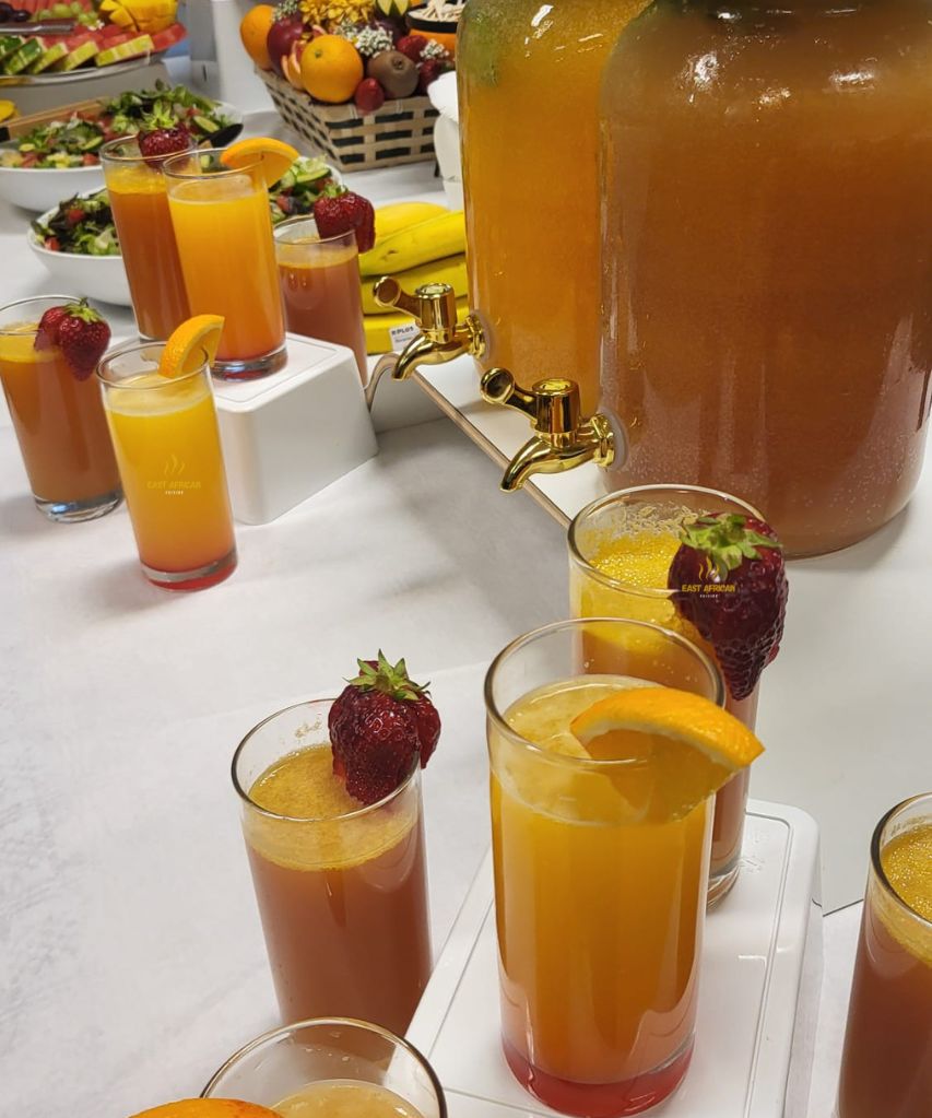 Tropical bubbly punch with exotic fruit and mint – refreshing, vibrant, and full of Mombasa sunshine in every sip!