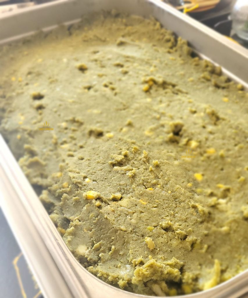 Made with mashed potatoes, maize, green peas, and pumpkin leaves (or other local greens), this dish is packed with plant-based goodness.