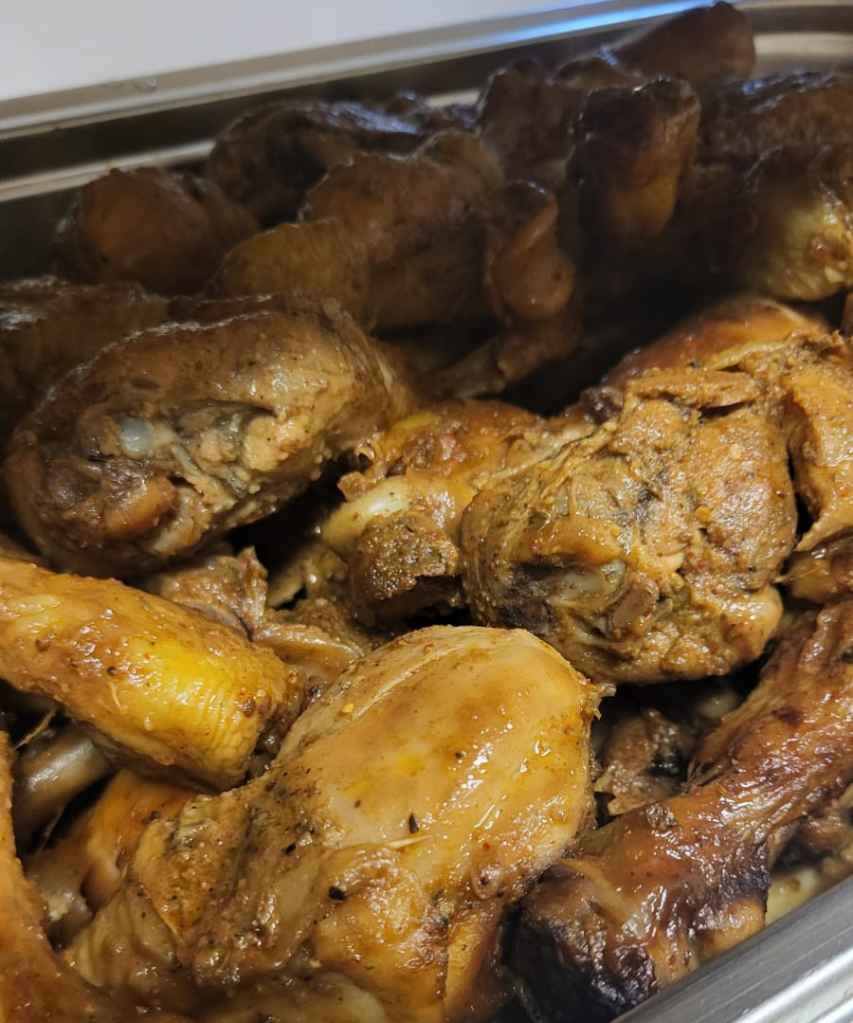 A tender East African roasted chicken, marinated in garlic, ginger, lemon, and spices. Slow-cooked and golden-crusted.