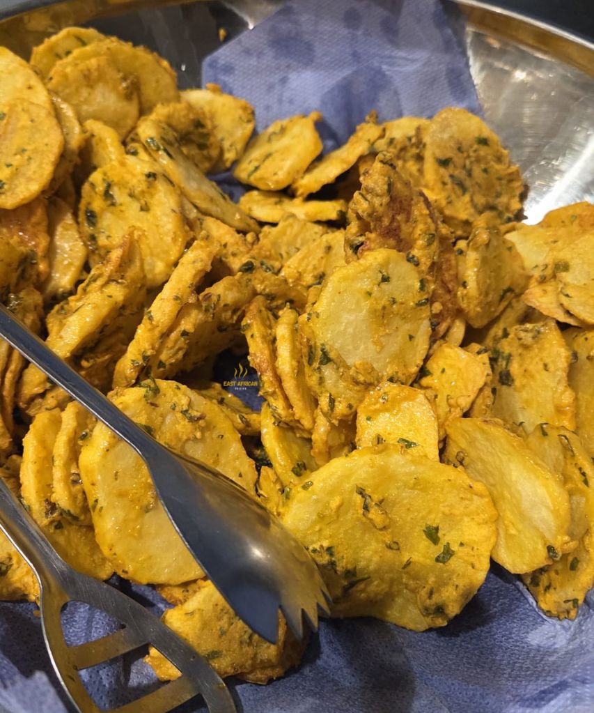 Thinly sliced potatoes, coated in spiced gram flour batter, and deep-fried to perfection. a delightful fusion of East African and Indian flavors!